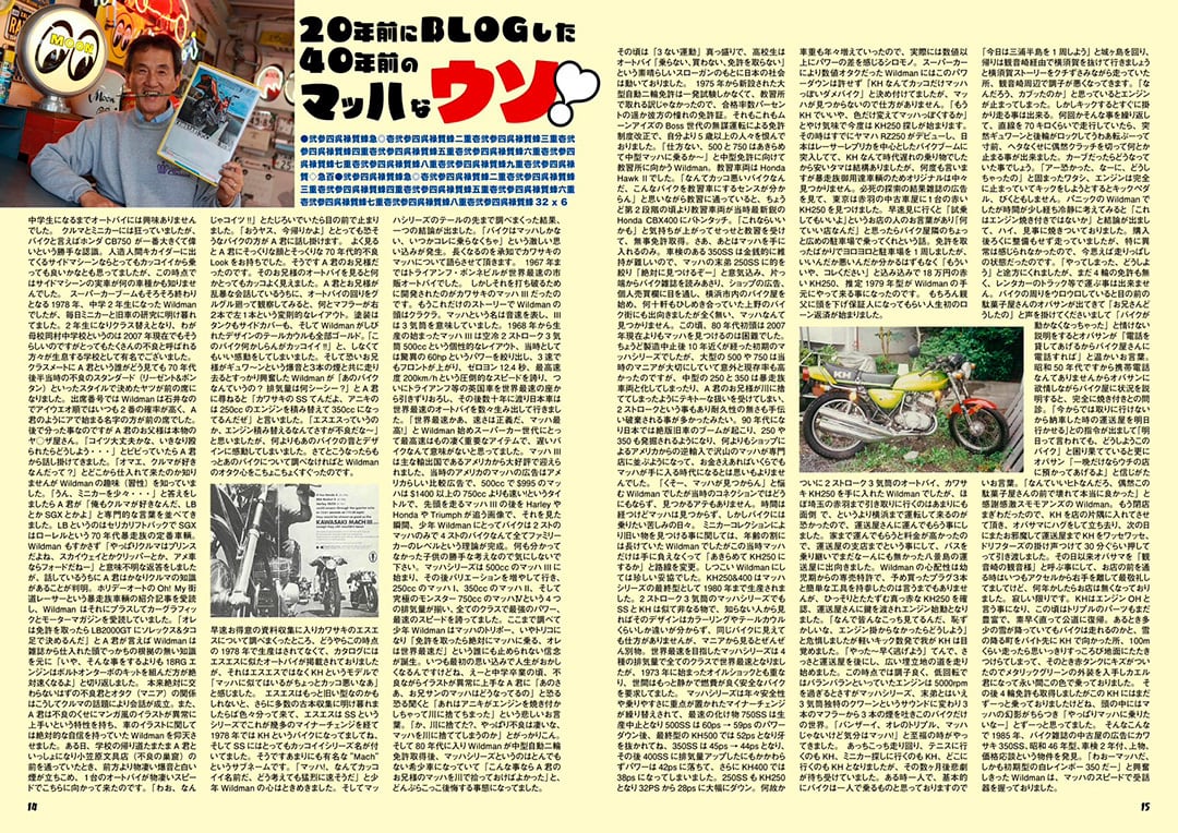 今回の巻頭特集は、 1961年の第4回全日本クラブマンレースでデビューし、350ccクラスで優勝。1966年からロードレース世界選手権に本格参戦して50cc、125ccで数多くの優勝と入賞の実績を残し、後にマツダと契約して「レーシングロータリーを成功に導いた男」と呼ばれた、片山義美さんの足跡を辿った内容です。